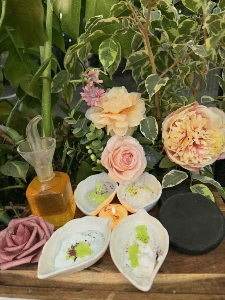Experience a bubbling,effervescent detox with volcano crystal soak, followed by a gentle sugar scrub. Rejuvenate with an exfoliating organic collagen mask, then nourish deeply with collagen lotion and a warm paraffin wax treatment.